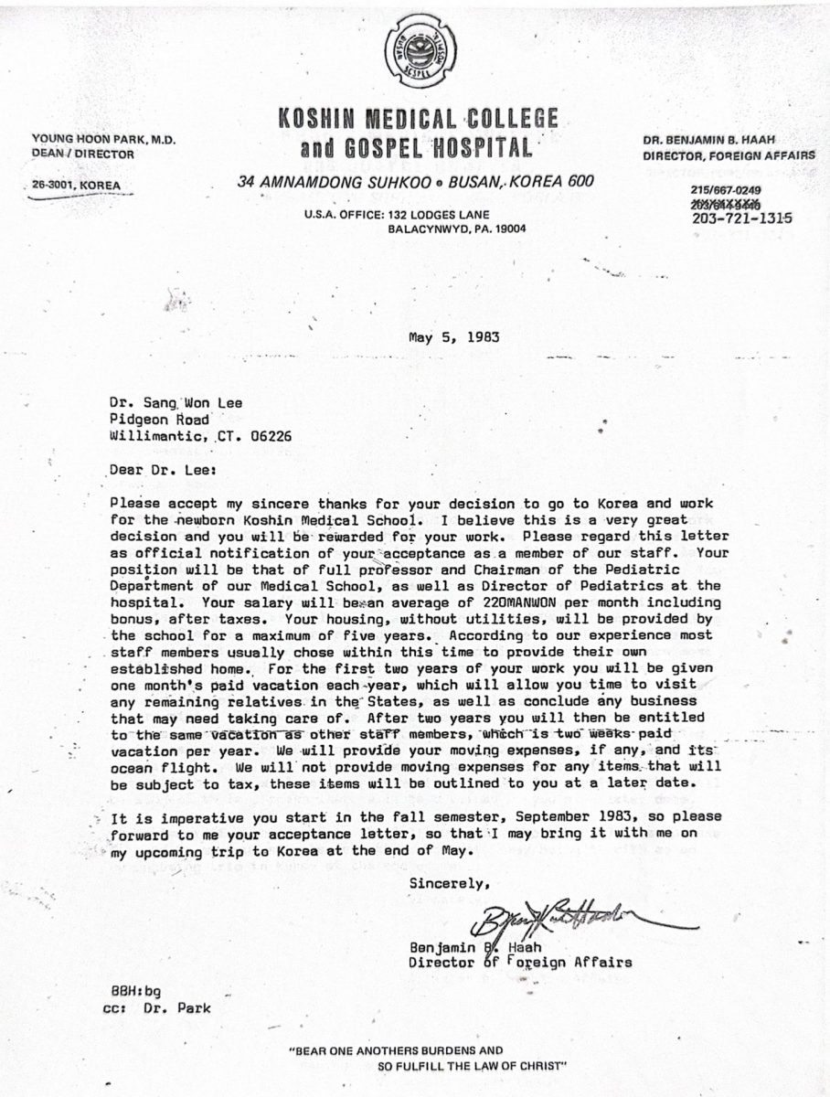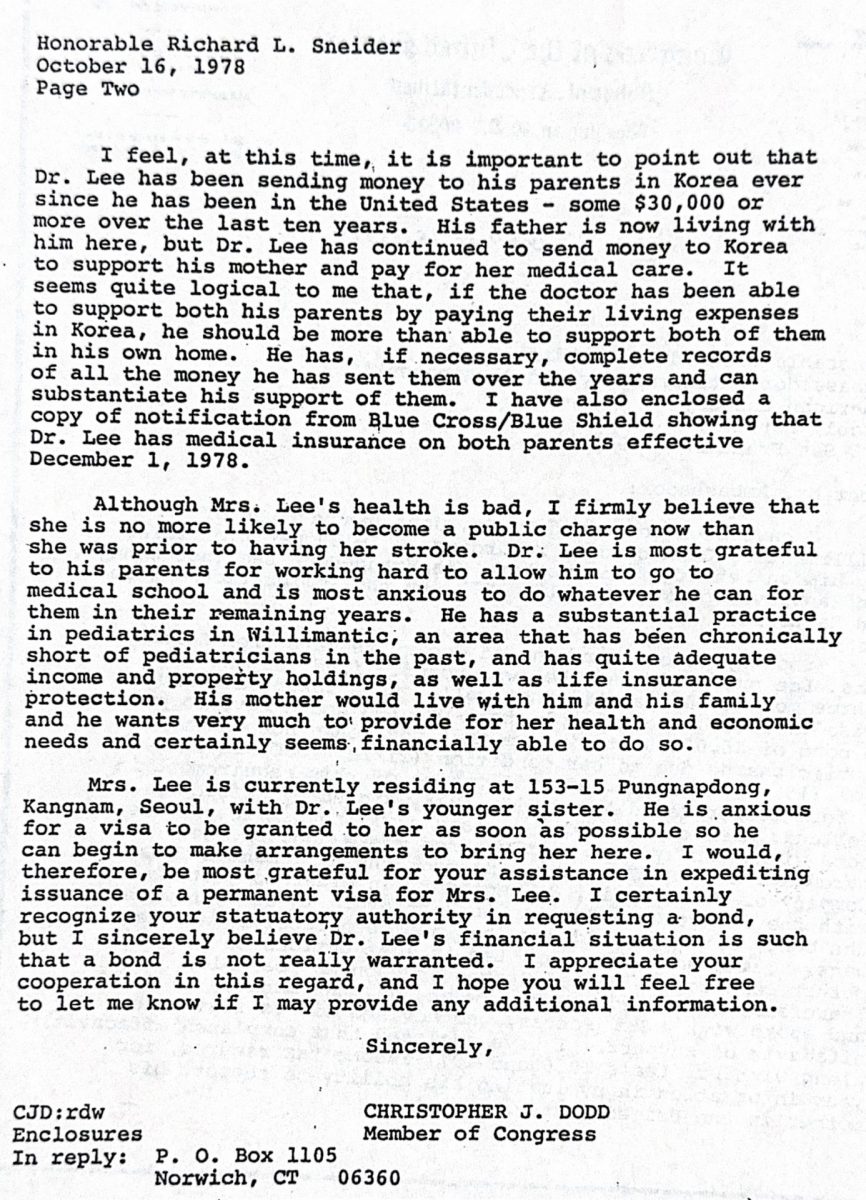 그는 정말로 Inspiration하고 특출나게 좋은 인간성을 가졌다. 그는 우선 가족을 사랑하는 것이 중요하다는 것을 알고 부모님과 형제 자매 조카들까지 미국으로 이민시켰다. 또한 그지방 주민들과 커네티컷 주 한인들을 물심양면으로 힘껏 돕는 일을 했다. 그는 진짜로 모범적인 의사이고 좋은 인간성을 지닌 의사이고, 좋은 인간이다.