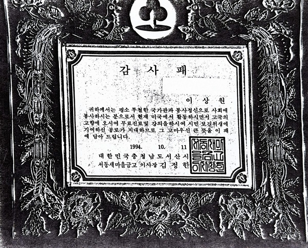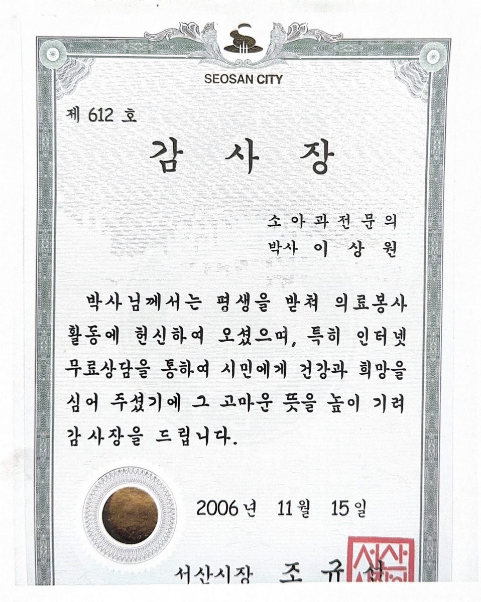 참고로 이상원 의사는 의사가 된 후, 약 50여 만명 이상 환자들의 건강증진 관리, 진료를 했으나 단 한건의 의료 사고나 진료 문제로 법적 문제가 생기지 않았다. 또 환자나 보호자로부터 서신 불평도 받은 적 없다. 하나님 감사합니다.
