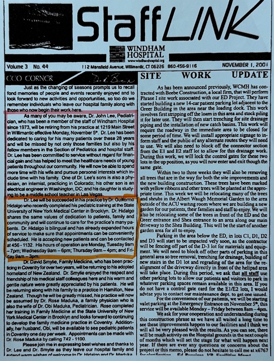 그는 정말로 Inspiration하고 특출나게 좋은 인간성을 가졌다. 그는 우선 가족을 사랑하는 것이 중요하다는 것을 알고 부모님과 형제 자매 조카들까지 미국으로 이민시켰다. 또한 그지방 주민들과 커네티컷 주 한인들을 물심양면으로 힘껏 돕는 일을 했다. 그는 진짜로 모범적인 의사이고 좋은 인간성을 지닌 의사이고, 좋은 인간이다.