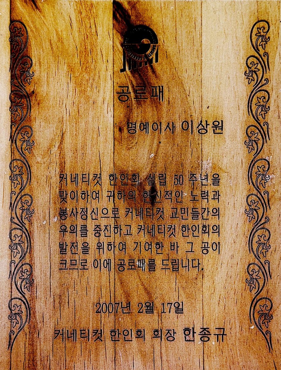 커네티컷 주지사 John G. Roland는 주청에 태극기를 게양하고 한인들 특히 커네티컷 한인회 임원들과 가족들을 초청하여 이상원 박사를 축하하는 행사를 가졌다. 과거 32년 동안 이상원 박사는 의사로서 의료 행위를 특히 월등하게 잘했고 미국 지방 주민들뿐만 아나라 한인 교포들에게 정신적으로 좋은 지도자가 되고자 하였고 그는 다양한 지식을 소유했으며, 거기에다가 인정이 많고, 동정심이 많았다.