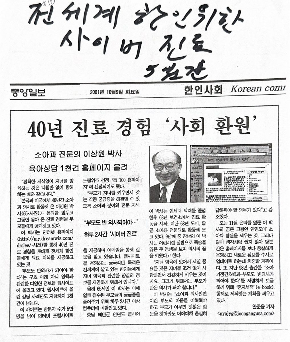 총 25권으로 분류해 웹 소아 청소년과 ‘부모도 반의사가 되어야 한다’ www.koreapediatrics.com(www.drleepediatrics.com) 을 출시했다.